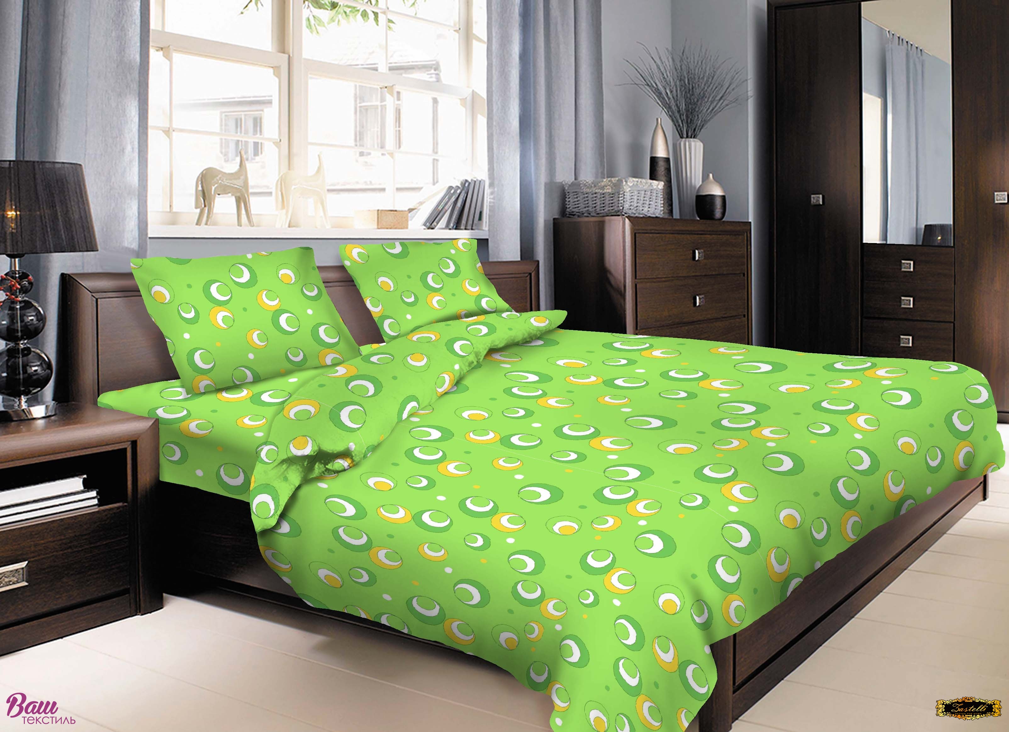 Постельное белье Zastelli Bubbles бязь. Постельное бельё из бязи украшено яркими разноцветными кругами на зеленом фоне. Натуральная ткань обеспечивает комфортный сон и приятные ощущения для кожи. Бязь отличается прочностью и долговечностью даже после многочисленных стирок. Цветочный рисунок создаёт атмосферу свежести и лёгкости в спальне. Комплект гармонично сочетается с разными интерьерами. Ткань хорошо пропускает воздух и сохраняет форму. Отличный выбор для повседневного использования и уюта вашего дома.