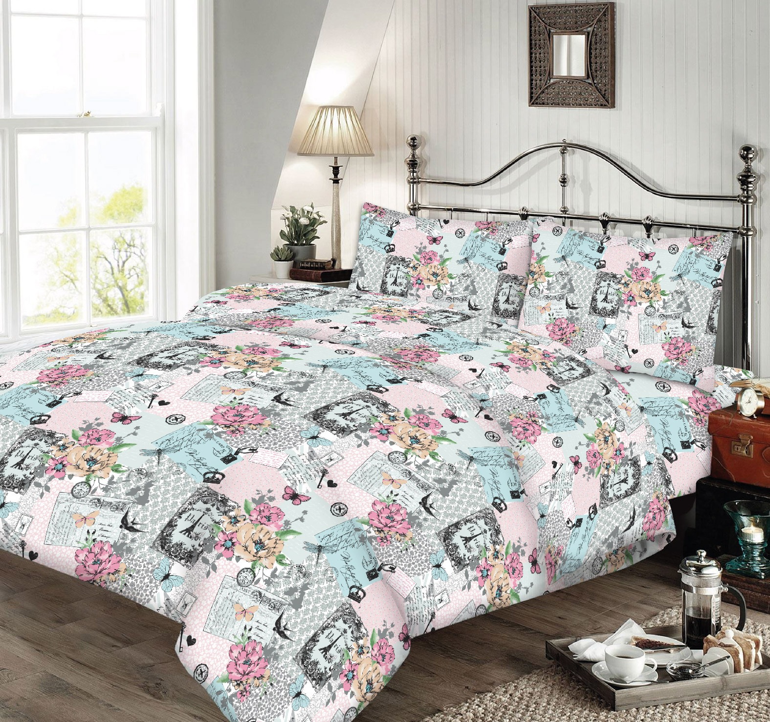 Простынь бязевая 40-0870 Pink. Простыня с разноцветным принтом — цветами и почтовыми открытками — создаёт атмосферу тепла и романтики в вашей спальне. Яркие оттенки и изысканный узор делают её стильным акцентом интерьера. Натуральная хлопковая бязь обеспечивает мягкость, комфорт и приятные ощущения во время сна. Ткань прочная, хорошо пропускает воздух и сохраняет насыщенность красок даже после многочисленных стирок. Сочетание цветочных мотивов и изображений открыток придаёт изделию уютный винтажный характер. Такая простыня добавит вашему дому уюта и индивидуальности. Она идеально подойдёт тем, кто ценит качество и красоту деталей. Выберите простыню, которая создаёт настроение нежности и вдохновения.