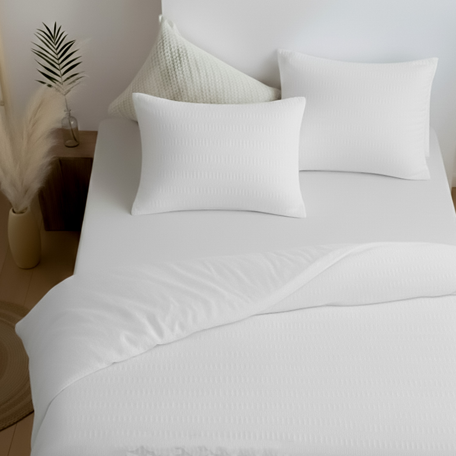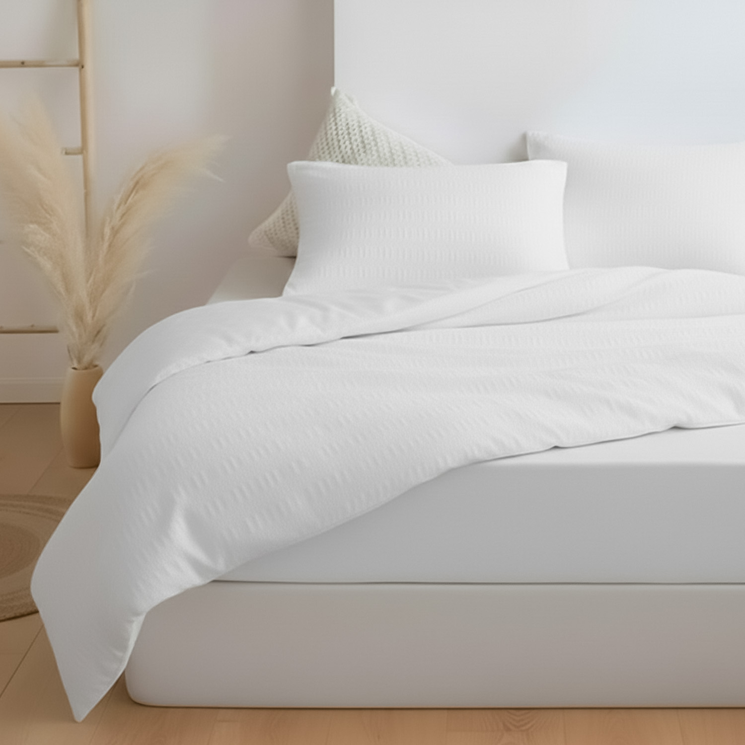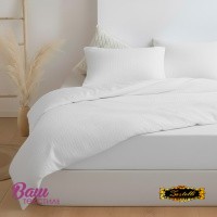 Постельное белье Zastelli White/white жатка хлопковая. Комплект постельного белья из жатого поликоттона — это сочетание элегантной простоты и практичного комфорта. Пододеяльник и наволочки выполнены из полностью жатой ткани поликоттон 50/50, которая не требует глажки и сохраняет аккуратный вид каждый день. Лёгкая фактура жатки придаёт комплекту стильный объём и современный характер. Простыня изготовлена из однотонной бязи, гладкой и приятной на ощупь, что создаёт идеальный баланс текстур. Белый цвет наполняет спальню ощущением свежести, чистоты и спокойствия. Такой оттенок легко сочетается с любым интерьером и подчёркивает минималистичный стиль. Поликоттон объединяет прочность и износостойкость с комфортом натуральной ткани. Комплект хорошо пропускает воздух и подходит для ежедневного использования в любое время года. Он станет отличным выбором как для дома, так и для отелей или апартаментов. Артикул White/white — универсальное решение для тех, кто ценит качество, практичность и сдержанную роскошь.