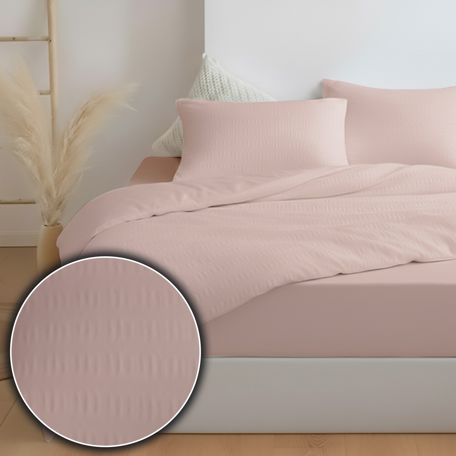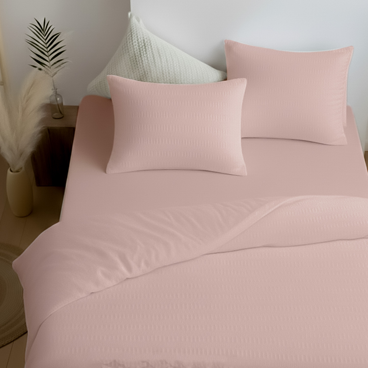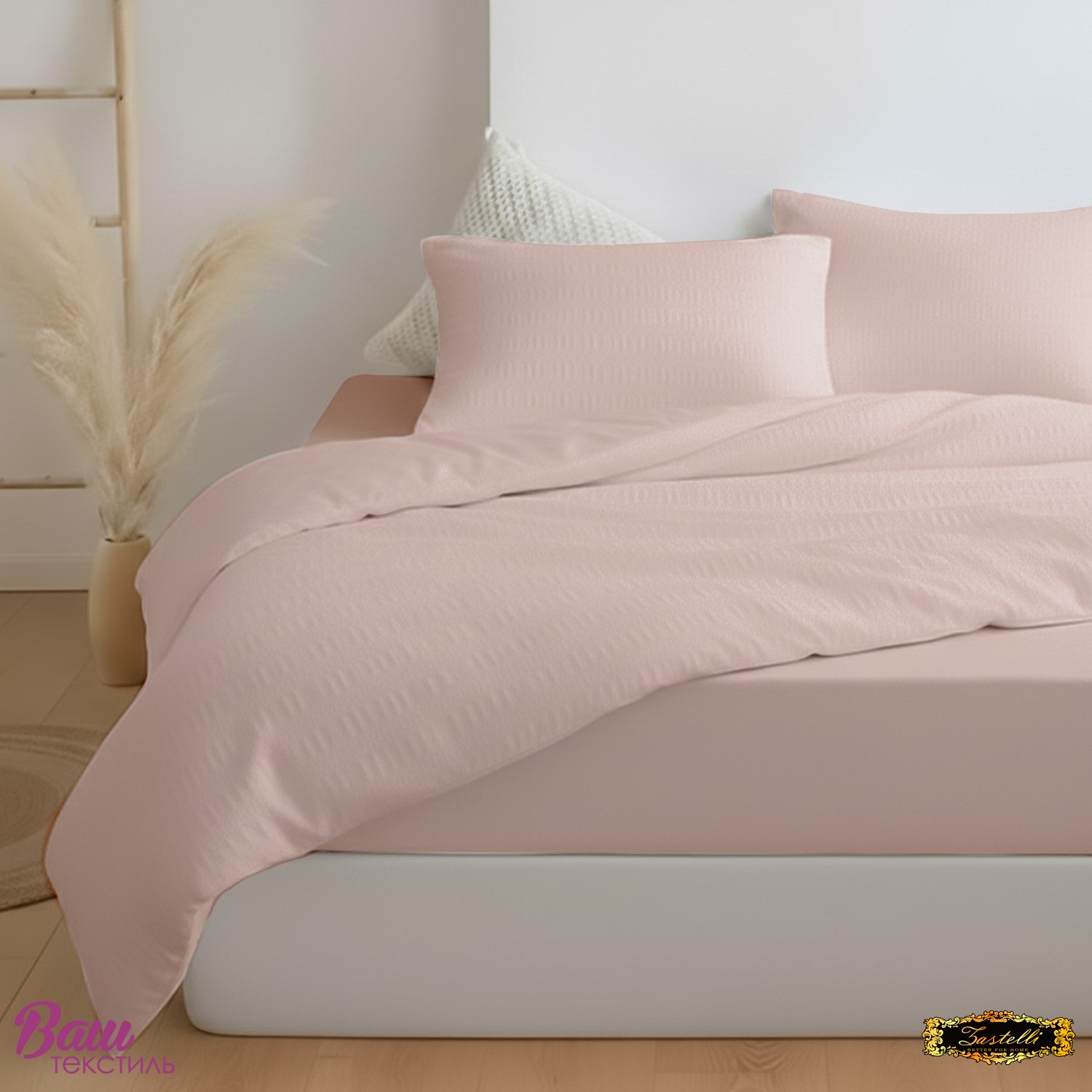 Постельное белье Zastelli 11-2409 Delicacy/Delicacy жатка хлопковая. Комплект постельного белья из жатого поликоттона — это сочетание элегантной простоты и практичного комфорта. Пододеяльник и наволочки выполнены из полностью жатой ткани поликоттон 50/50, которая не требует глажки и сохраняет аккуратный вид каждый день. Лёгкая фактура жатки придаёт комплекту стильный объём и современный характер. Простыня изготовлена из однотонной бязи, гладкой и приятной на ощупь, что создаёт идеальный баланс текстур. Нежный оттенок Delicacy выглядит утончённо и мягко, создавая атмосферу уюта и гармонии в спальне. Он добавляет интерьеру лёгкости и визуального спокойствия, делая пространство более светлым и изящным. Поликоттон объединяет прочность и износостойкость с комфортом натуральной ткани. Комплект хорошо пропускает воздух и подходит для ежедневного использования в любое время года. Он станет отличным выбором как для дома, так и для отелей или апартаментов. Артикул 11-2409 Delicacy/Delicacy — универсальное решение для тех, кто ценит качество, практичность и сдержанную роскошь.
