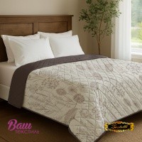 Double-sided bedspread FIELD BEIGE/19-1230 brown Zastelli. The bedspread is made of cotton calico on the front side and microfiber fabric on the back. The product is completely soldered with a square pattern, which not only decorates it, but also makes it durable and strong. It is decorated with beige calico piping along the perimeter. The bedspread is very stylish, discreet, and will decorate any interior. The product is easy to care for. Color and design - white with a floral and plant pattern on the front side, and plain brown on the back. Due to the soldering of the bedspreads, the filler is evenly distributed along the perimeter of the product, and does not bunch up in the corners. An error of +-5 cm in size is allowed.