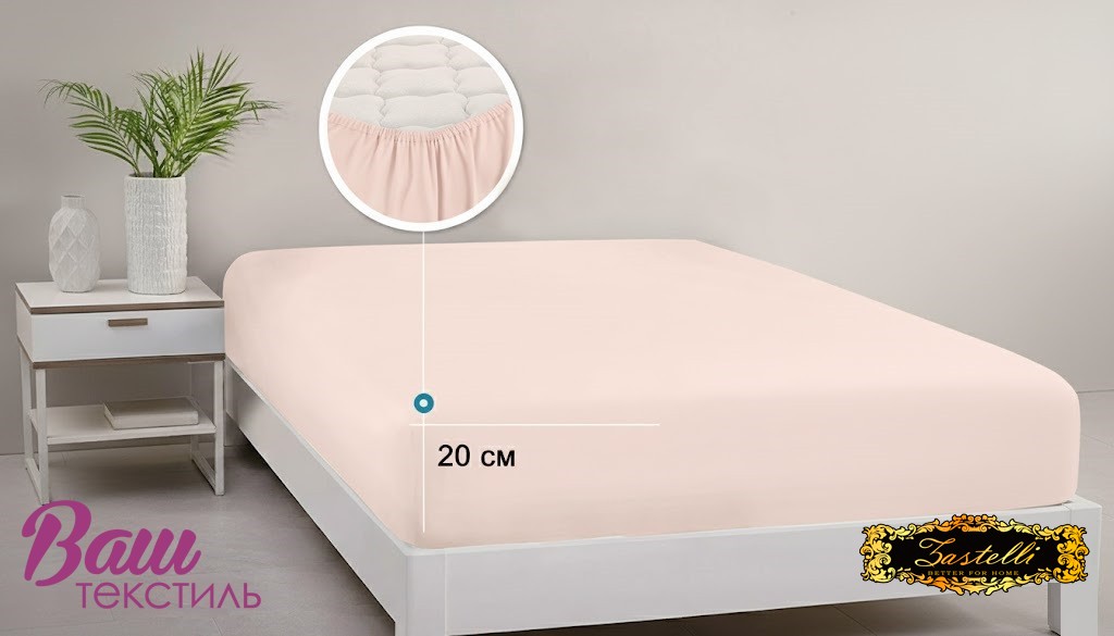 Fitted sheet ZASTELLI Light Pink. Skirt height: For sheet sizes for a mattress 100x200, 140x200, 160x200, the skirt height is 20 cm (+-5 cm), and for size 180x200 the skirt height is up to 15 cm (+-5 cm). More and more often, people who live with the times and hurry with the modern pace of life decide to buy a sheet with an elastic band. First of all, this is due to the simplicity and ease of use. The obvious advantages include the following characteristics: 1. Sleep becomes more comfortable and restful: thanks to the elastic band located around the perimeter, the sheet is firmly fixed on top of the mattress, so it does not wrinkle or slide off the bed. 2. Saving time when cleaning the bed: the sheet does not bunch up, which means it does not need to be straightened. 3. Much better protects the mattress from unwanted and unintentional contamination, thereby increasing its performance properties.4. No need to iron. For this alone, you should definitely buy a calico sheet with an elastic band ZASTELLI 18-0306 gray. The advantages can be listed endlessly. But it’s better to see for yourself and write your own review of Zastelli fitted sheets! You will, of course, always find the lowest prices on our website.