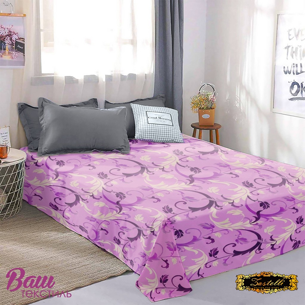 Calico sheet 40-0576 Violet. The bedsheet with ornate swirls on a purple background brings a touch of elegance and luxury to your bedroom. The deep purple shade adds richness, while the intricate swirl pattern enhances the sense of refinement. Made from natural cotton, it ensures a soft, breathable, and comfortable sleeping experience. The fabric is durable, easy to care for, and maintains its color even after many washes. The decorative print looks stylish and pairs beautifully with both light and dark bedding tones. Perfect for classic or modern interiors alike. It keeps its fresh and elegant appearance over time. Choose a bedsheet that blends sophistication, comfort, and quality.