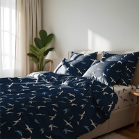 Підковдра бязева Zastelli Birds on blue Front. Підковдра з бязі поєднує практичність та сучасний дизайн. Натуральна бавовняна тканина приємна на дотик і забезпечує комфортний сон у будь-яку пору року. Стильний темний фон з білими силуетами птахів додає інтер’єру легкості та гармонії. Бязь відома своєю зносостійкістю та простотою у догляді — вона легко переться та зберігає форму після численних прань. Матеріал добре пропускає повітря та не викликає алергії, що робить його ідеальним для щоденного використання. Це чудовий вибір для тих, хто цінує комфорт, стиль та довговічність.
