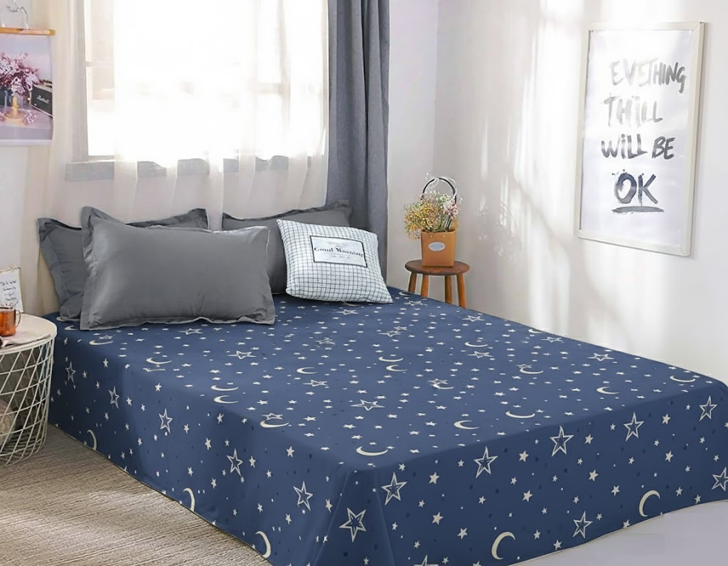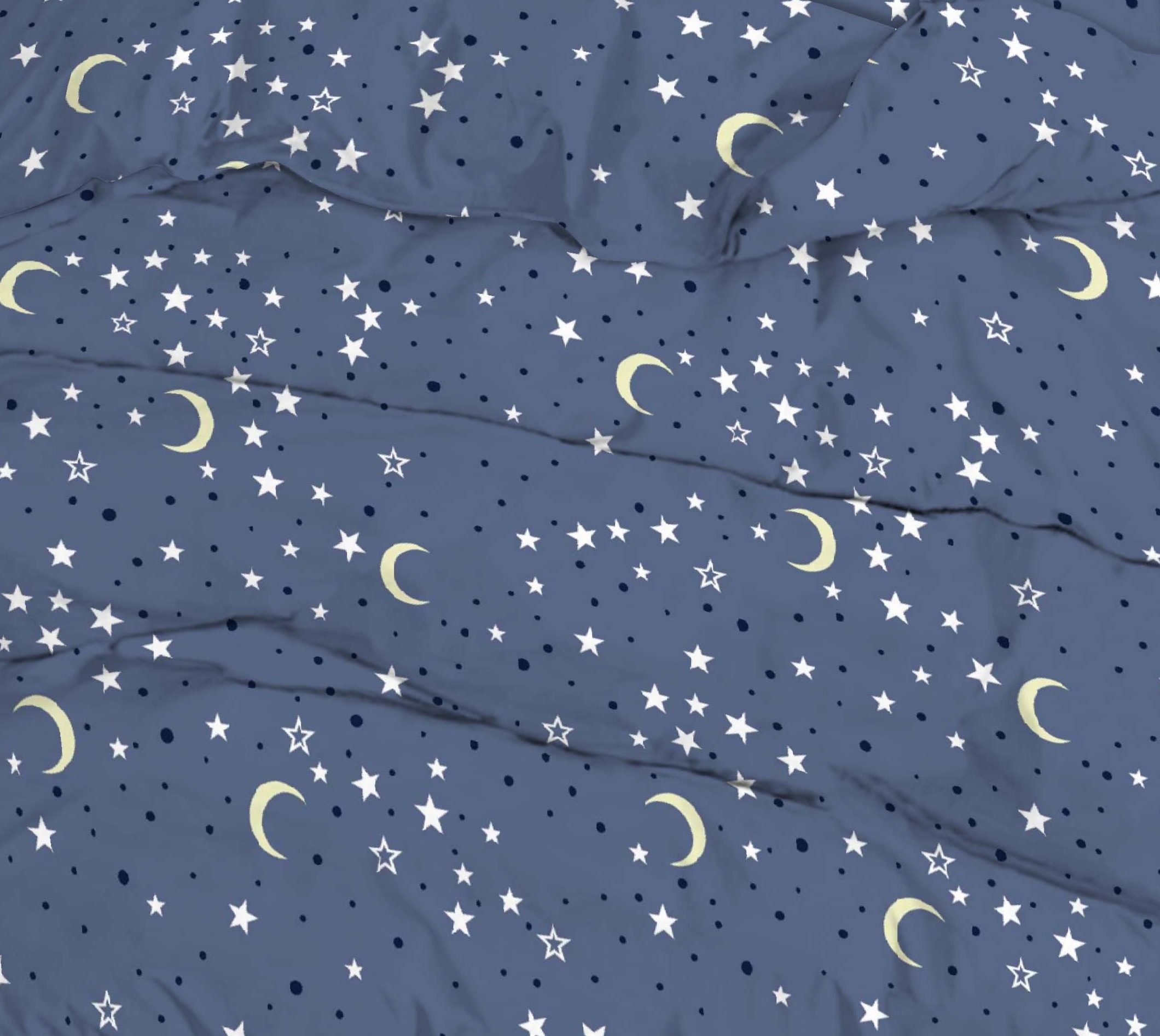 Простирадло бязь Night. Простынь с белыми звёздами и луной на тёмно-синем фоне создаёт ощущение покоя и уюта, словно вы засыпаете под звёздным небом. Глубокий синий цвет добавляет интерьеру тепла и гармонии. Узор со звёздами и месяцем выглядит волшебно и подойдёт как взрослым, так и детям. Натуральная хлопковая бязь обеспечивает мягкость, комфорт и отличную воздухопроницаемость во время сна. Ткань прочная, сохраняет форму и цвет даже после многочисленных стирок. Эта простыня станет стильным акцентом вашей спальни. Её приятная текстура дарит ощущение тепла и уюта. Выберите качество и спокойный сон с нашей звёздной простыней.