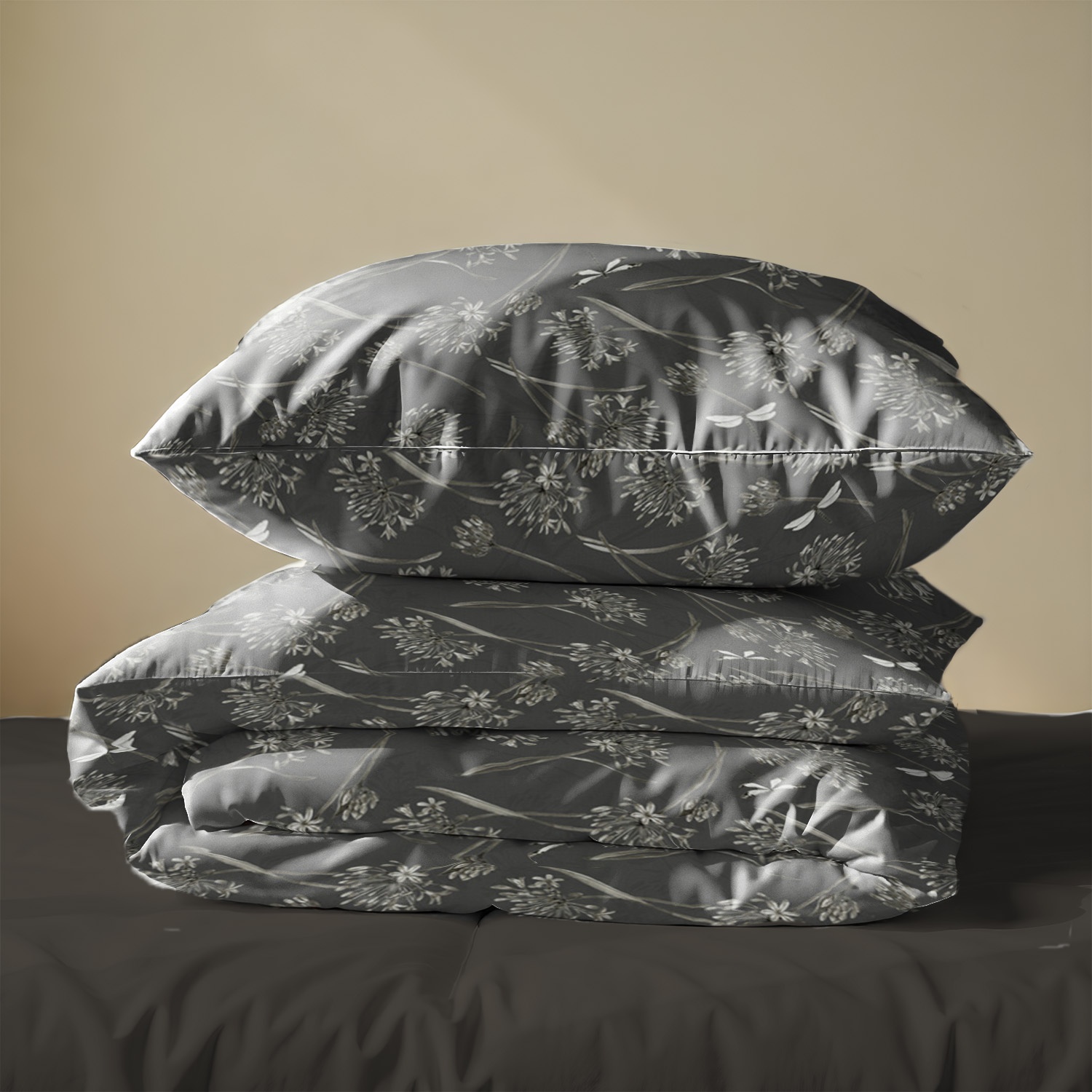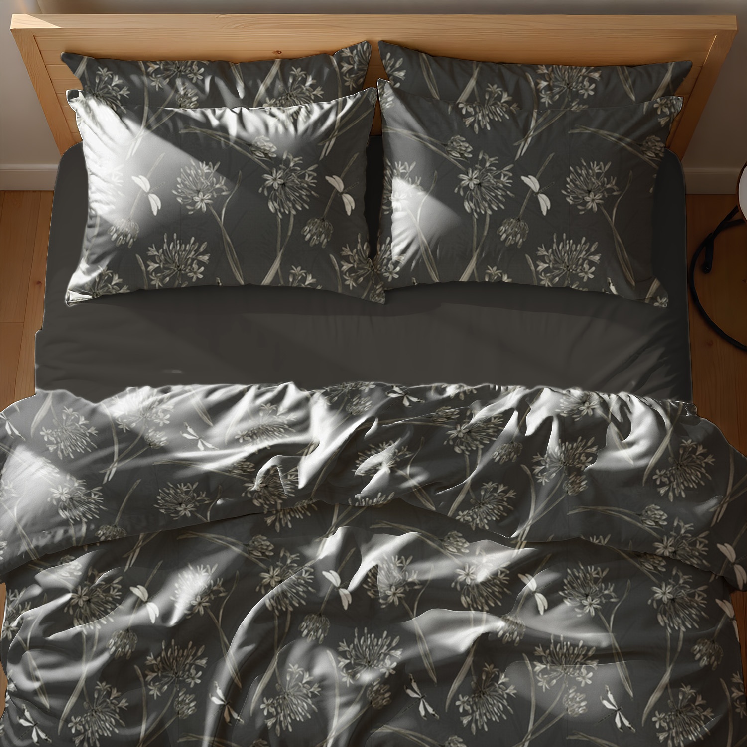 Постільна білизна Zastelli J3479-6/Smoked Pearl жатка виконана з рослинним принтом із бабками та доповнена однотонним сірим простирадлом, що створює гармонійний і спокійний вигляд. М’які природні мотиви надають комплекту легкості та особливої атмосфери. У наборі є простирадло, підковдра та наволочки з комфортної жатої тканини. Комплект підходить для тих, хто цінує простоту та елегантність. Матеріал дуже міцний і зносостійкий, добре переносить численні прання. Тканина легко переться й довго зберігає первісний вигляд. Особлива перевага жатки — відсутність потреби у прасуванні. Це робить комплект практичним і зручним для щоденного використання.