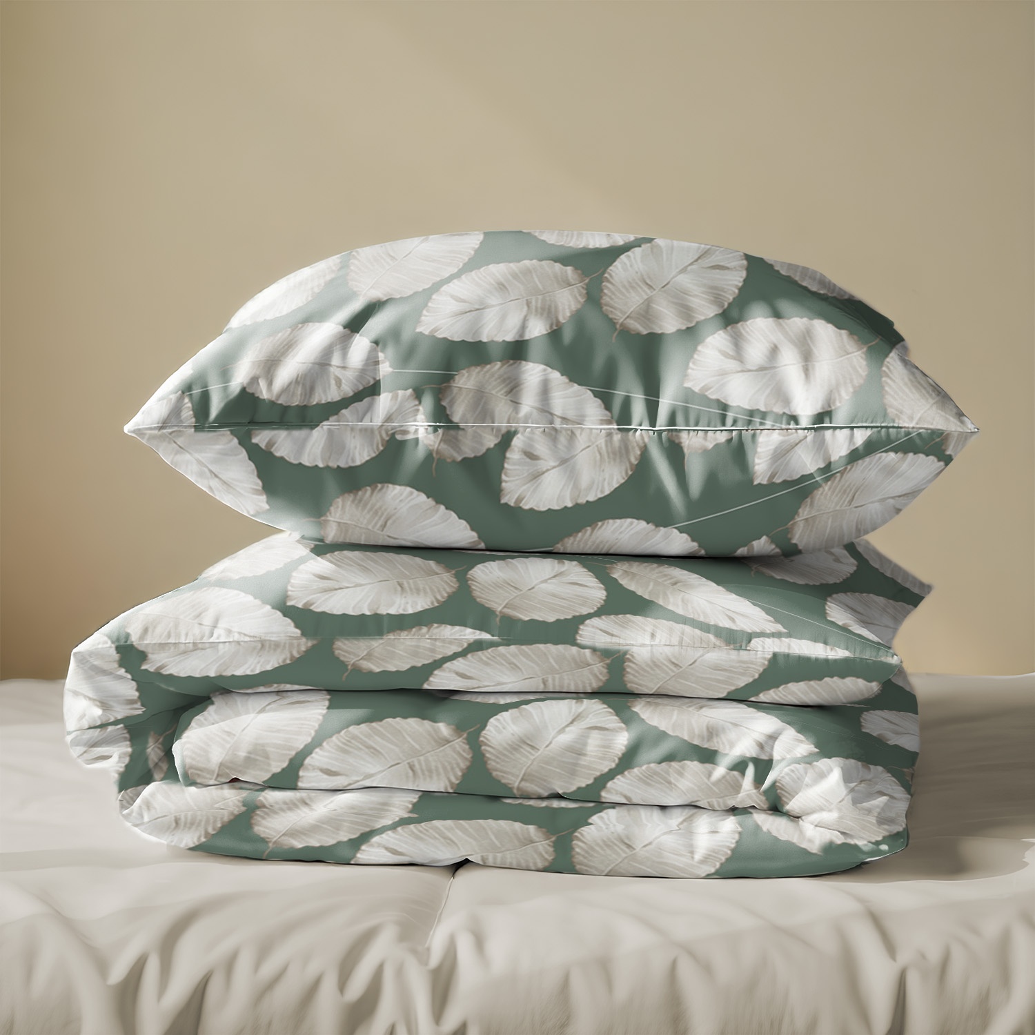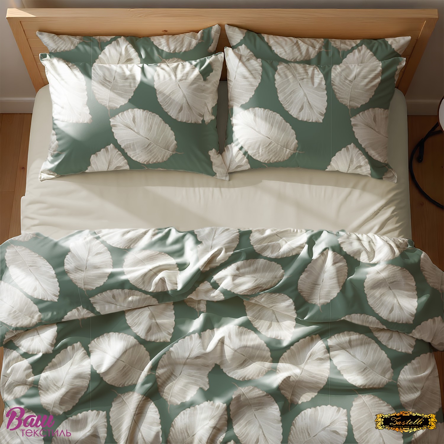 Постільна білизна Zastelli Y10091-5/Chateau Gray Жатка виконана з великим світлим листям на насиченому зеленому фоні та доповнена однотонним сіро-коричневим простирадлом, що створює стильний природний образ. Контраст між зеленим полотном і м’якими відтінками листя робить дизайн виразним та сучасним. У набір входять простирадло, підковдра та наволочки, виготовлені з м’якого й комфортного жатого матеріалу. Комплект підходить для тих, хто цінує простоту та елегантність. Тканина міцна й зносостійка, добре витримує численні прання. Матеріал легко переться й довго зберігає первісний вигляд. Важлива перевага жатки — її не потрібно прасувати, що робить комплект надзвичайно зручним для щоденного використання.
