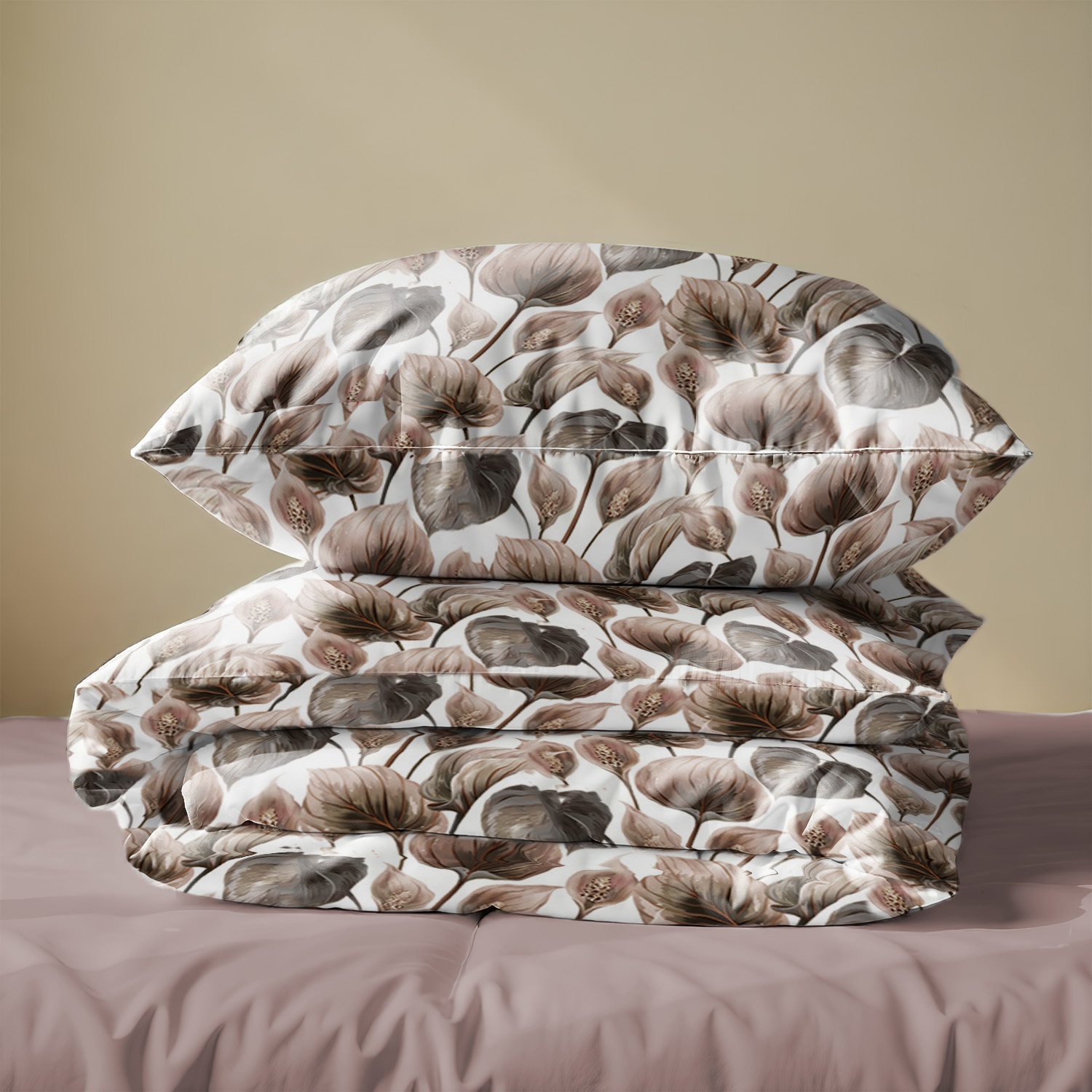 Постільна білизна артикулу Y10048-11/Pale Mauve виконана з м’якого та комфортного жатого матеріалу, який не потребує прасування і чудово підходить для щоденного використання. Дизайн комплекту представлений ніжними бежевими та сірими квітами кали на світлому фоні, що створює спокійну і витончену атмосферу в спальні. У набір входять блідо-лілове простирадло, підковдра та наволочки, які гармонійно поєднуються між собою. Тканина міцна й зносостійка, добре витримує багаторазові прання, легко переться й довго зберігає первісний вигляд. Такий комплект стане вдалим вибором для тих, хто цінує естетику, комфорт та елегантність у щоденному побуті.